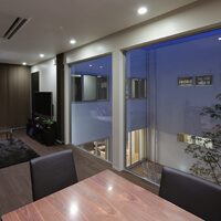 さらに庭の景色や風、光を隅々まで取り込むために部屋と部屋の間に様々な3つのテラスと坪庭を設けています。