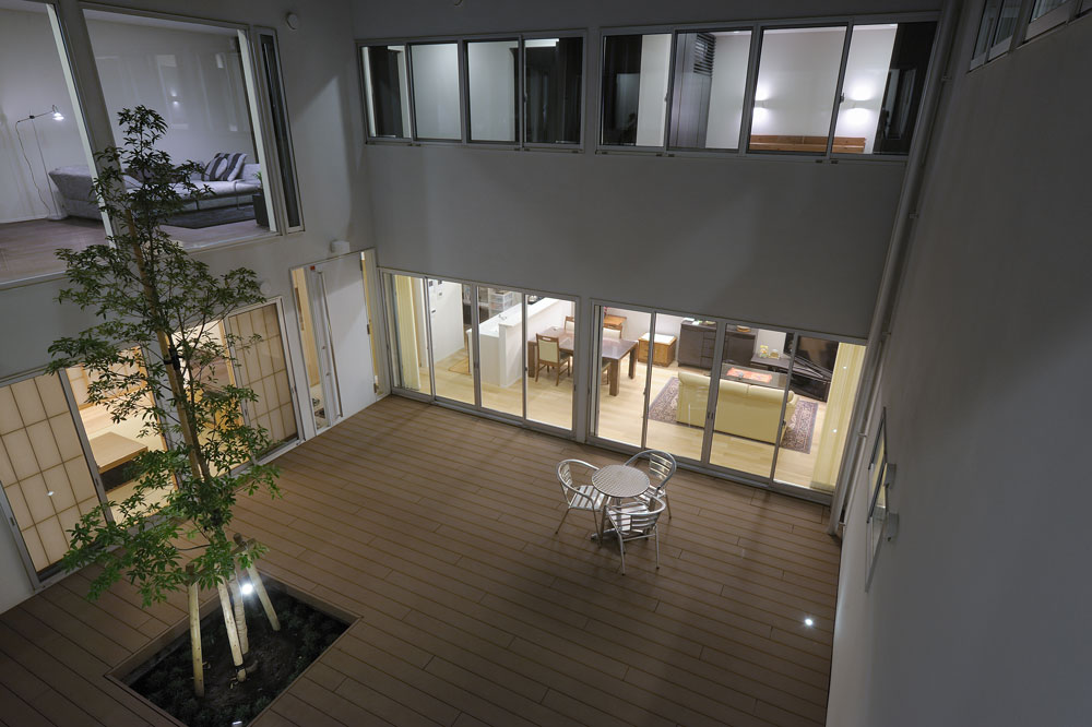 大きな中庭や小さなテラス、そして各居室が相互に連続しながら、平面的にも立体的にも緩やかにつながった開放的な住空間をつくりあげています。